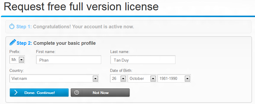 Bước 2: Nhập email của bạn vào ô Get your free full license key now! và nhấn chọn Request full version key.